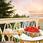 Il personale efficiente, la piscina bella e il giardino verde. La vista piacevole sul parco, la camera per non fumatori e per non fumatori.